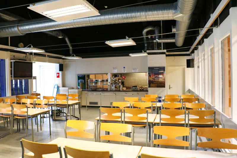 Cafeteriet byder på forfriskninger, lette anretninger og snacks til idrætscentrets besøgende. Det er det perfekte sted at slappe af efter en træningssession eller sport.